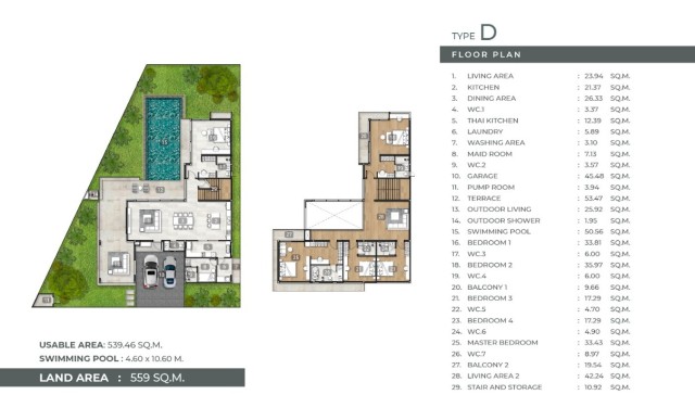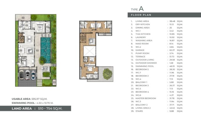 Each villa is a statement of modern design and spacious comfort — featuring 5 bedrooms, 7 bathrooms, maids room, and a private swimming pool surrounded by lush landscaping. With usable areas between 503–588 sqm and three private parking spaces, these residences deliver the space and elegance today’s discerning buyers expect.