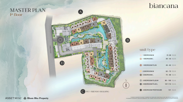 The project features a range of 1 to 3-bedroom units (approximately 31–131 sqm), thoughtfully designed with functional layouts, natural light, and private balconies. With over 30 lifestyle facilities—including lagoon pools, fitness centers, onsen, coworking spaces, and café-style social areas—Biancana delivers a complete “live, stay, and invest” environment that attracts both holidaymakers and long-term residents.