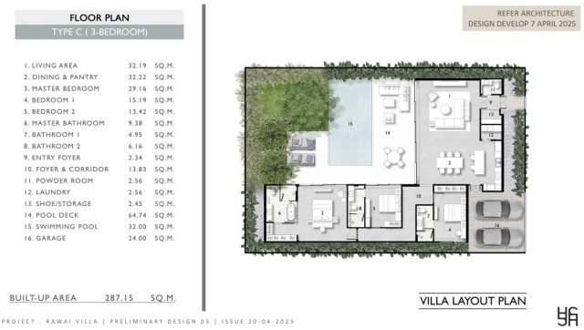 Each villa is thoughtfully designed with open-plan living spaces, floor-to-ceiling sliding glass doors, and seamless indoor-outdoor flow. Natural light floods the home, highlighting the tropical garden and private swimming pool. Features include: